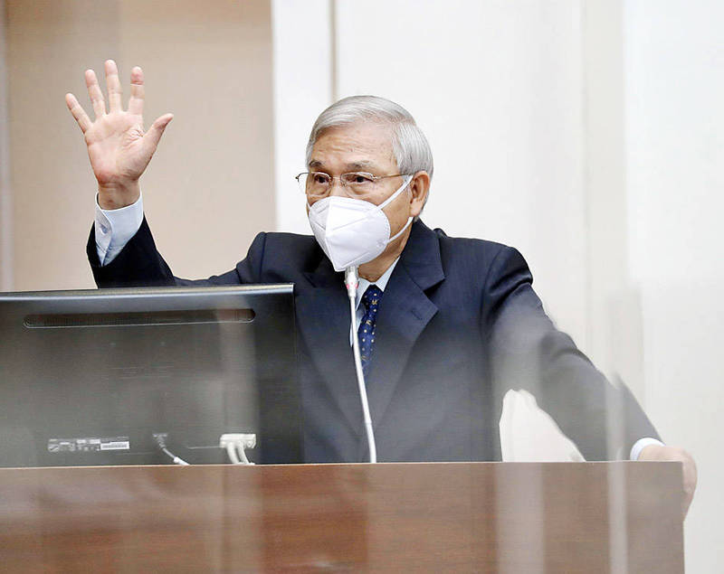 Central bank Governor Yang Chin-long speaks at a meeting of the legislature’s Finance Committee in Taipei on May 12.