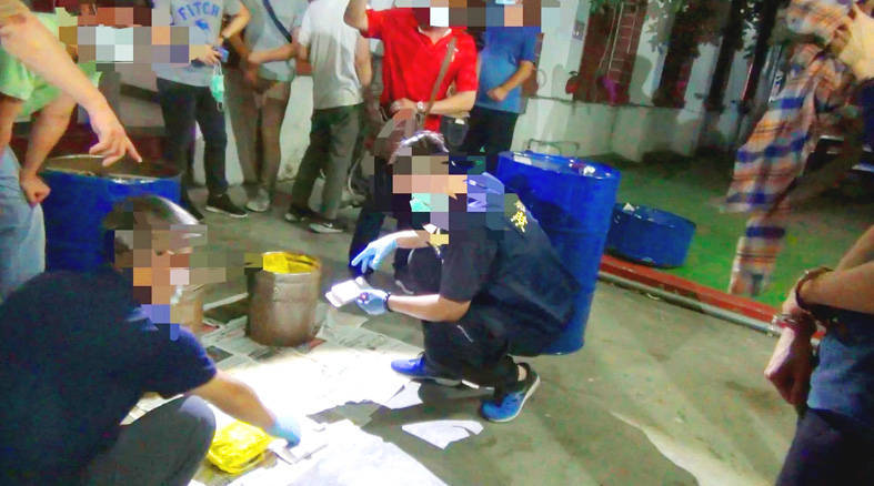 The team made the discovery while investigating Taipei’s Northern Union triad for suspected oil smuggling, Chang said, adding that the methamphetamine was found in an oil drum.