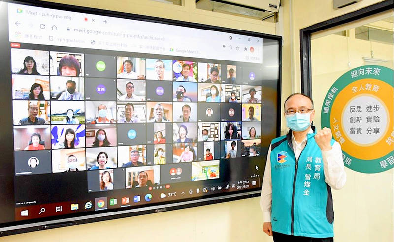 Taipei Department of Education Commissioner Tseng Tsan-chin holds a virtual symposium with high-school principals on Aug. 20 last year.
