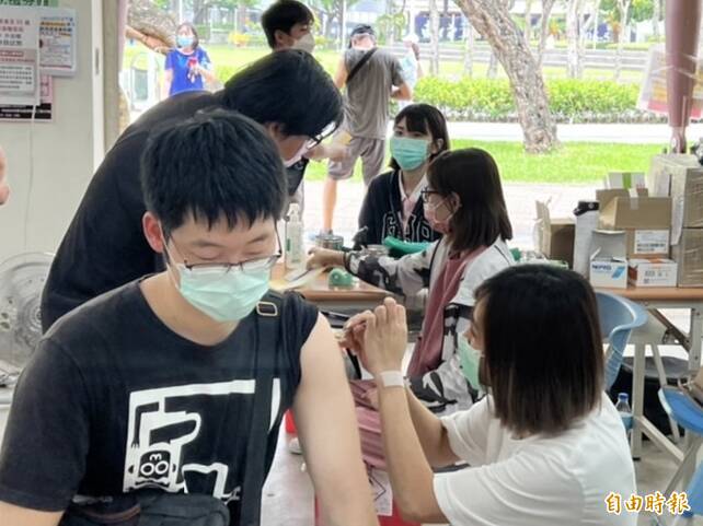 BNT成人劑型疫苗將用畢,青少年到文心森林公園外展接種站施打。(記者蔡淑媛攝)