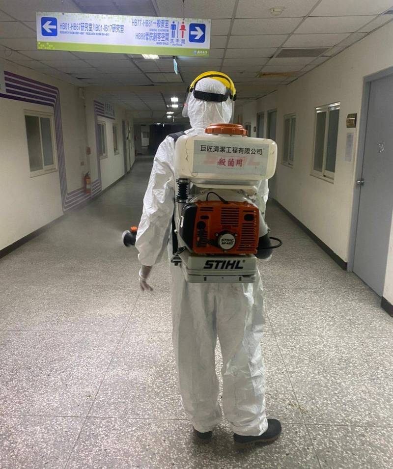 亞洲大學傳出一名學生確診,校方昨天得知後就針對上課的教室和電梯等行經動線完成消毒。(記者陳建志翻攝)