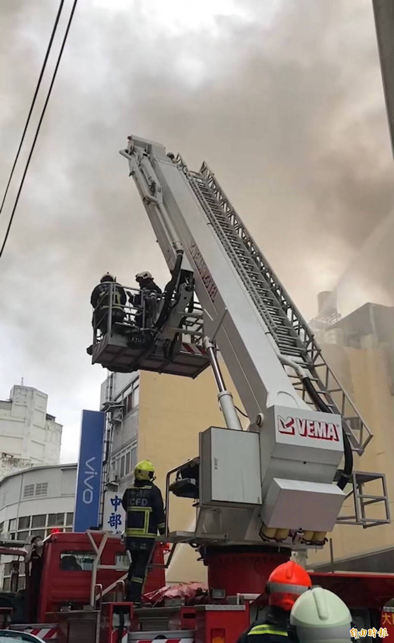 台中惡火一度傳出雲梯車故障延誤救援,消防局晚間澄清並非故障。(記者許國楨攝)