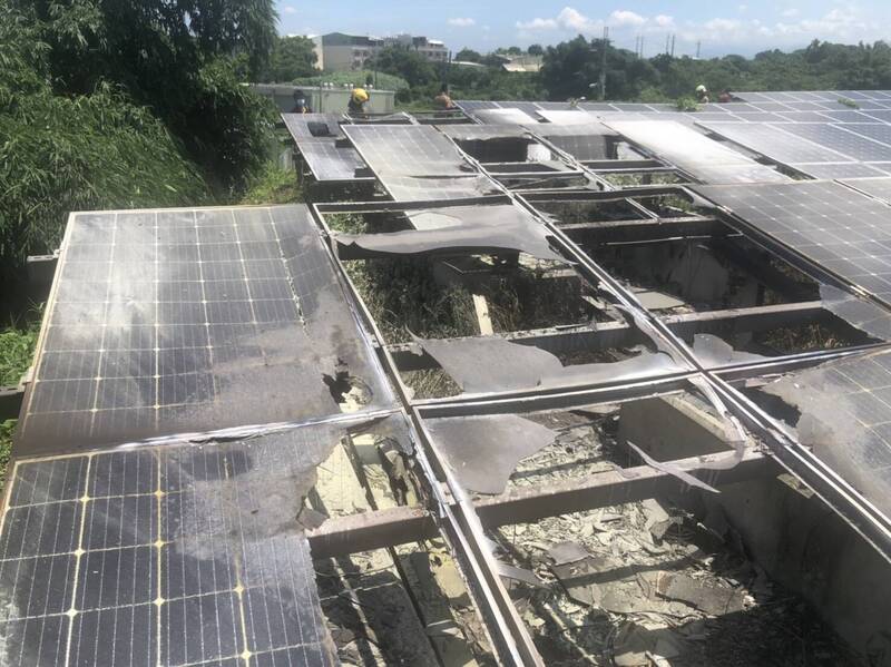 消防局指出, 經查因設備廠商在設備周遭除草不慎,打到電線導致短路,造成太陽能板起火燃燒,設備廠商馬上斷電,並初步使用滅火器自撲。