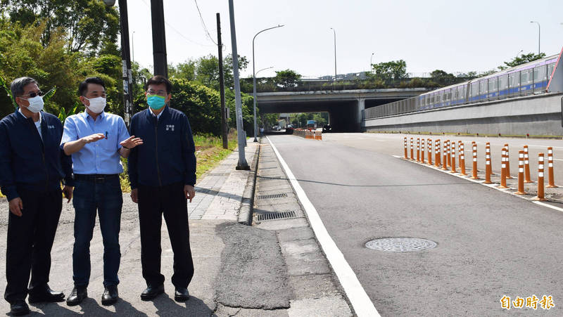 一行人進入機捷A22老街溪站穿堂層視察,主辦的鐵道局簡報A22老街溪站位於中壢區中豐路、中央西路口,目前整體工程預定10月完成,待完成穩定性測試後,今年底就可進入試營運階段。