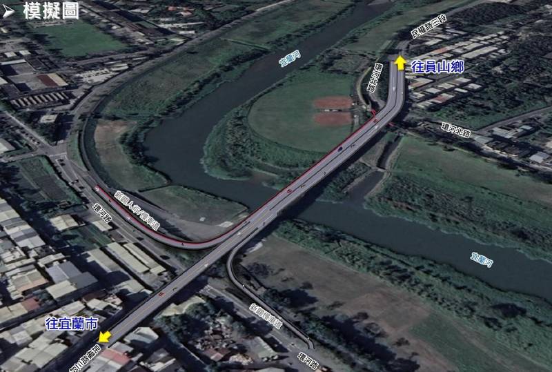 西門橋1988年啟用,是宜蘭市通往員山鄉的主要橋樑,汽機車共道,地方反應常出事故,希望拓寬橋面改善。交通部公路總局提出5個西門橋改建方案,以方案4聲量最大,將現有橋樑拓寬至15公尺,汽、機車分流通行,並於宜蘭河右岸(環河路),增設2個機慢車專用引道,一個往員山鄉方向(上橋),一個是往宜蘭市方向(下橋)。