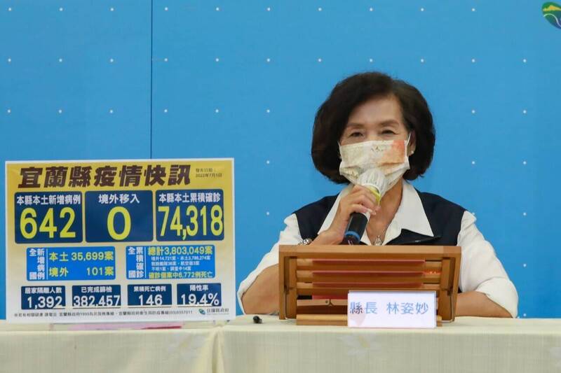 宜蘭縣長林姿妙出席疫情記者會。(宜蘭縣政府提供)