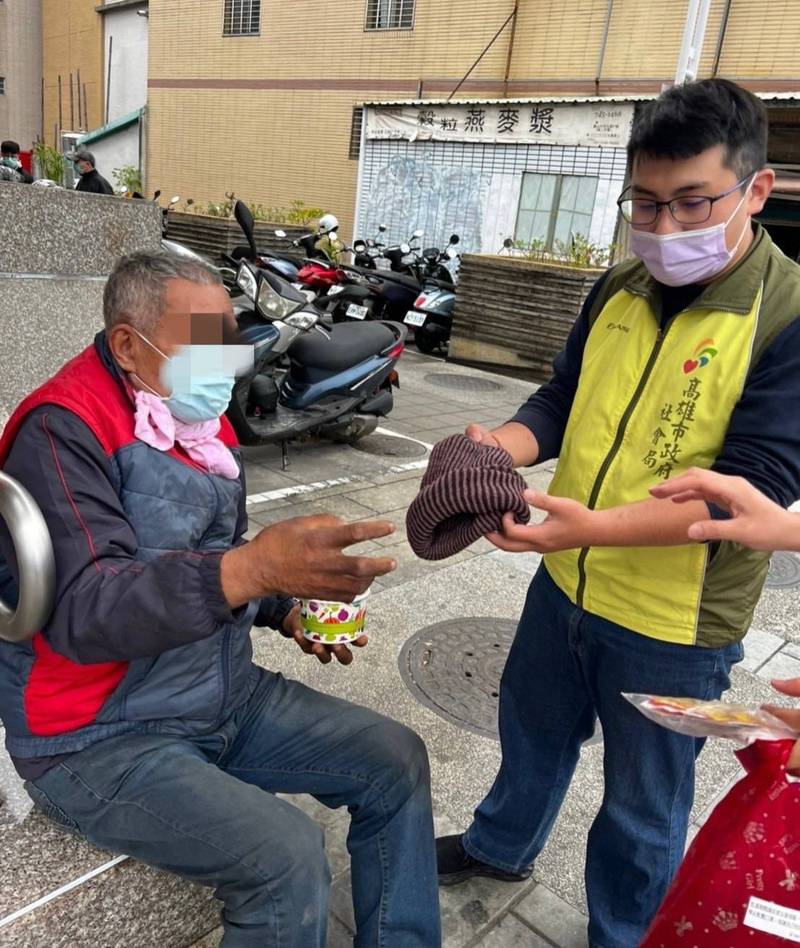 〔記者方志賢/高雄報導〕入冬以來最強寒流報到,高雄氣溫下探13度,高雄市社會局啟動低溫關懷機制,開設三民及鳳山2處街友服務中心「臨時安置服務」及「短期旅館安置服務」,街友中心及協力單位街友關懷協會社工人員,仍續加強關懷訪視街友,發放熱食、暖暖包等禦寒物品。