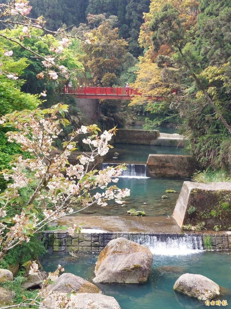 尤其令許多遊客驚訝的是,春天來到杉林溪,竟能看到一大片楓紅似火的美景,經園區自然教育中心副館長陳瑞麒解說,原來這不是楓樹,而是一種叫紫葉槭的落葉喬木,因葉紅素濃,葉落較慢,約從3月展葉期開始一直到10月中旬落葉,葉片都呈現紫紅色,夏季呈現深紫紅色,春天嫩葉及秋天落葉前更火紅,搭配園區日式拱橋、涼亭及鳥居等造景,彷彿瞬間秒飛日本,讓因疫情久未出國的遊客相當療癒。
