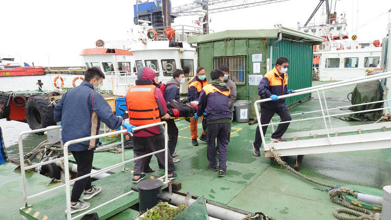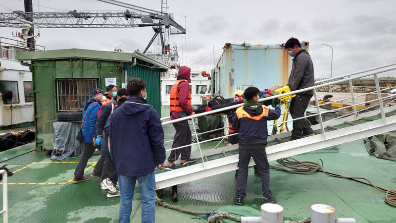 鍾姓引水人不慎落海被救起,目前送醫急救中。(記者歐素美翻攝)