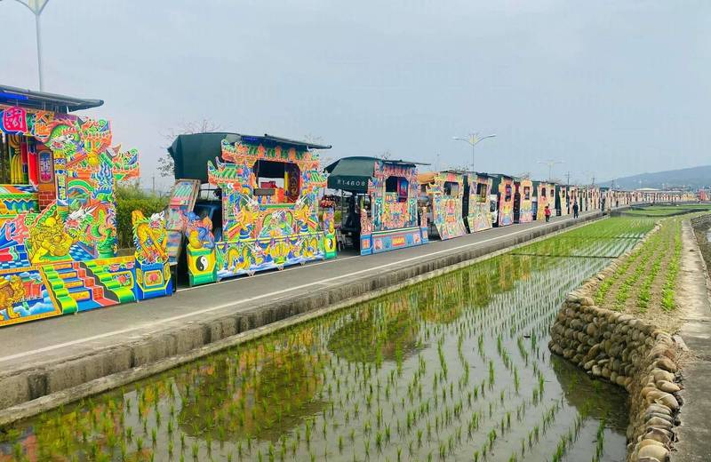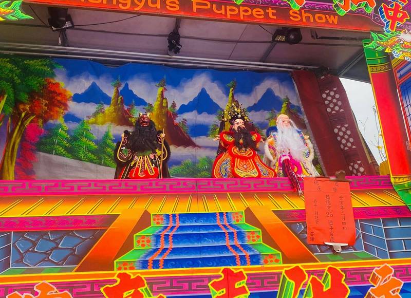 芬園鄉縣芬路今天下午出現一排排的布袋戲團,綿延長達600公尺,總共有66個布袋戲團與1個歌仔戲團同時公演,現場還有準備平安餐晚宴,吸引不少信眾參與,每個布袋戲團都出動大批戲偶,充滿聲光效果,生動活潑,鄉長林世明也特地到場同慶,當他看到這個史詩級的畫面時也直呼「壯觀」。