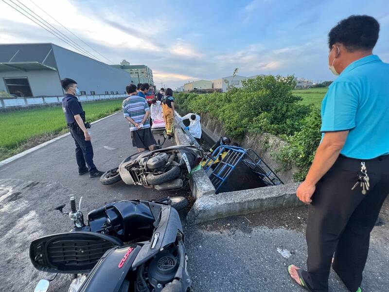 福興消防分隊表示,這起意外發生在今天晚間6點多,地點在福興鄉粿店巷與產業道路的路口,52歲柯姓女子與59歲謝姓男子各自騎乘機車在路口發生碰撞,柯女彈起摔落路旁的排水溝內,接獲民眾報案後,馬上出動救護車到場,女騎士意識清醒,出動長背板、雙節梯把柯女救上來,所幸柯女只有輕傷,謝男則沒有送醫。
