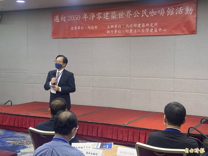 內政部今日舉辦「邁向2050年淨零建築世界公民咖啡館活動」,內政部次長邱昌嶽致詞。(記者吳書緯攝)