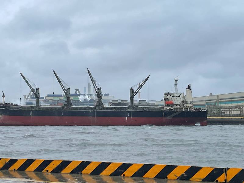 巴拿馬籍散裝船「祥富輪」因台中港風浪太大一度斷纜漂移擱淺。(台中港務分公司提供)