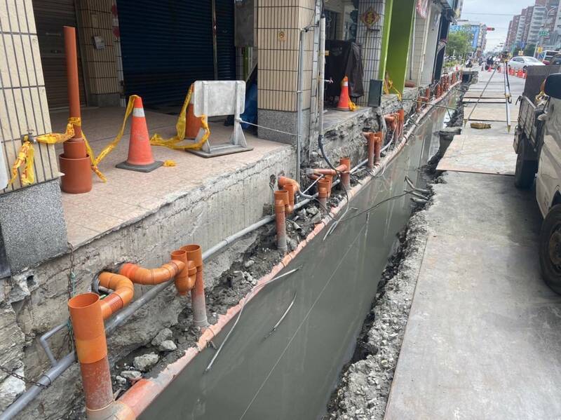 岡山路側溝排水系統老舊,容易有淹水情況發生,水利局針對區域特性進行統整,同步辦理污水用戶接管,以及道路側溝排水改善工程。