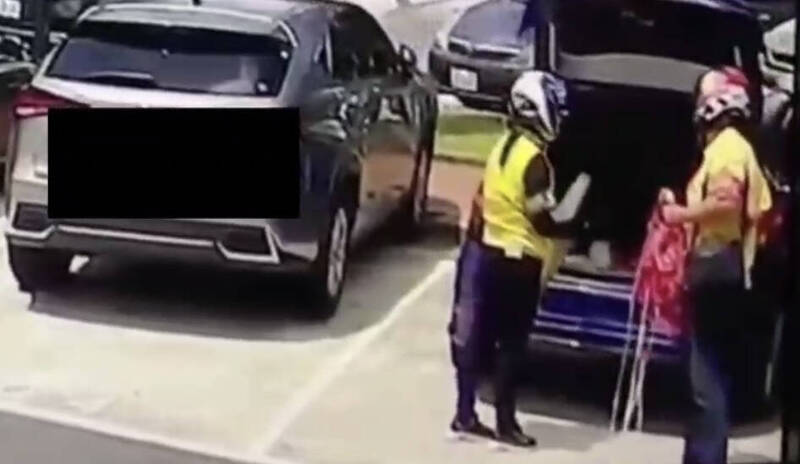 國道6隊指出,有媒體播報指稱,「重機陳抗人士騎乘重機上國道,到關西服務區拉紅布條陳抗」,調閱服務區內監視器影像發現,2男1女今天早上10點25分開車進入服務區G區停車格,下車著用重機裝備,10點29分在空曠處所拉紅布條拍照,活動時間約1分鐘,10點38分就開車離開,全程約13分鐘,不見有違規騎乘重機上國道的情事。