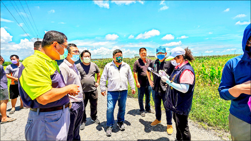 立委蔡易餘、議員戴光宗、黃鉦凱、六腳鄉長陳川崎、義竹鄉長黃阿家等人昨與農糧署及縣府農業處人員勘災;蔡易餘表示,六腳鄉、朴子市、義竹鄉的青割玉米因連日降雨受損嚴重,初步勘查受損超過兩成,請縣府農業處統計災害面積提報農糧署進行認定。