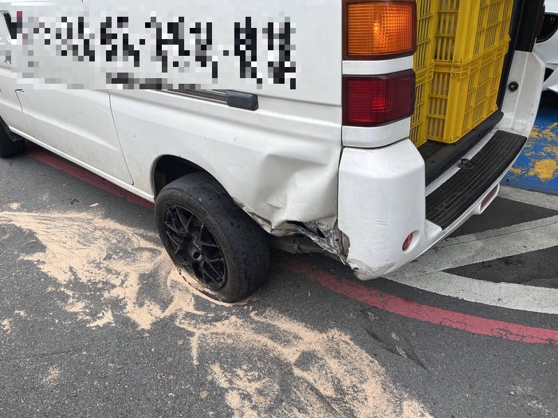 機車滑撞路邊違停的麵包車。(記者闕敬倫翻攝)