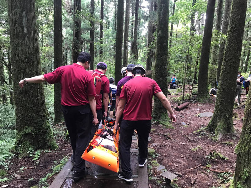 消防人員搜救受困山友。(記者許倬勛翻攝)