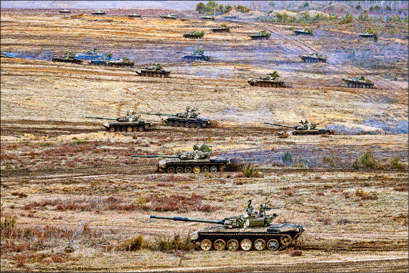 美國十八日再次警告,俄羅斯持續朝烏克蘭邊境增兵,總兵力數恐達十九萬,恐在數天內進犯烏國。而烏東再傳砲擊,加深俄軍藉機行動的氛圍。圖為俄軍與白俄羅斯聯合軍演。(美聯社)