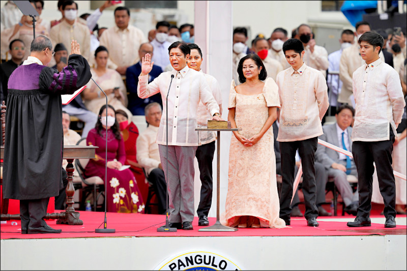 〔編譯茅毅/綜合報導〕五月在總統選舉大勝的小馬可仕,六月三十日就任菲律賓總統,開啟今後六年、馬可仕家族統治菲國的新時代。其父馬可仕為獨裁者,曾統治菲國逾二十年。小馬可仕宣誓就職後,稱讚亡父過去在菲國的統治,完成國家獨立以來許多達不到的成就。