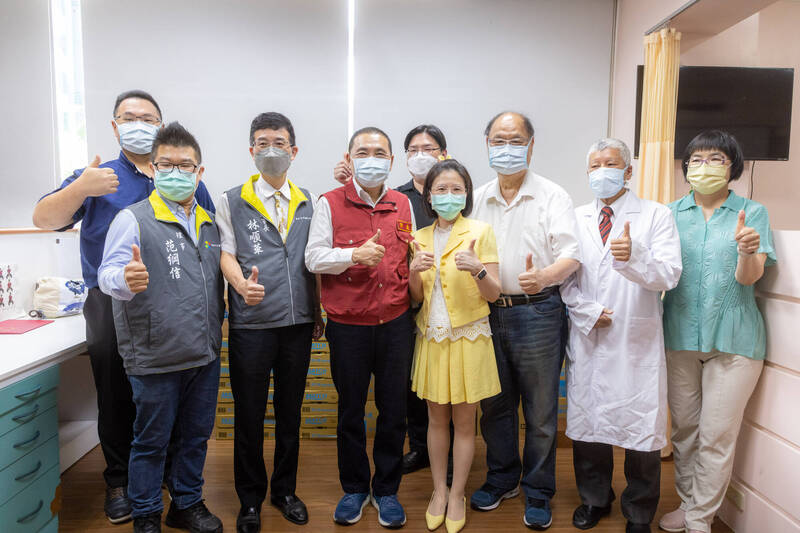 新北市長侯友宜今(30)天到提供照護的醫療院所表達感謝,透過一條龍的整合式服務,讓長輩或身障者可以安心在家裡得到萬全的照顧。 (新北市政府提供)