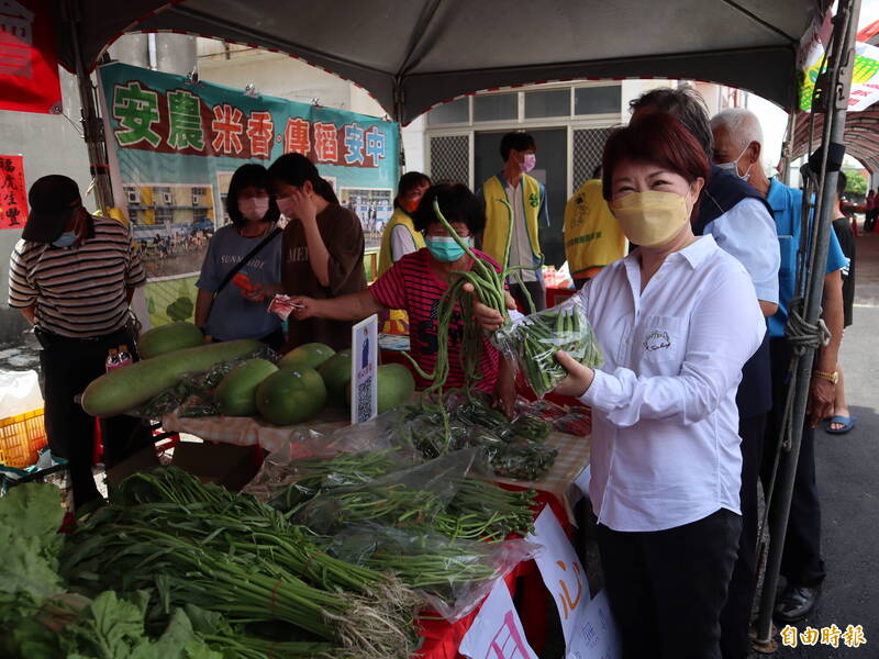 〔記者歐素美/台中報導〕台中市大安區農會今天舉辦創會100週年「百年大安‧永續大安」暨大安葱文化節推廣活動,市長盧秀燕到場不忘行銷大安蔥、米、芋頭、肉品及酒等「大安五寶」,稱讚農會在包裝設計上採用環保且可再利用,並當場採購大安青農生產的秋葵的蔬菜,表示回家川燙即可食用;立法院副院長蔡其昌則到場分享其協助大安區農會爭取農委會1億9千萬元補助,以更新及擴大大安屠宰場現代化設施,讓台中肉品屠宰生產等更便利。