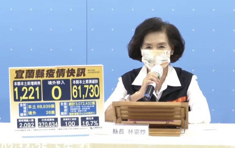 宜蘭縣長林姿妙出席疫情記者會。(宜蘭縣政府提供)