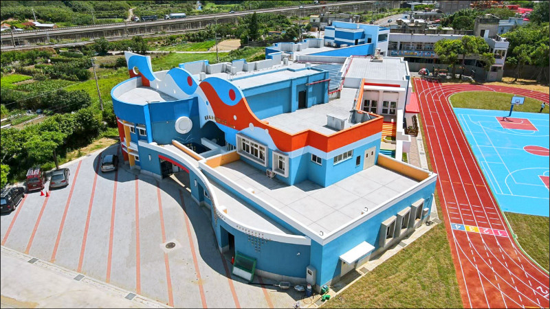 楊曼華說,海寶國小是極具特色的濱海小校,除了絕美的景致外,學生約四成為新住民二代,也是苗栗縣新住民學習中心,因此在新校舍設計上,便將在地的自然人文融入建築之中,營造「海中珍寶、浩瀚學樓」的意象,以清爽藍色系凸顯海洋教育、彩虹則象徵多元族群融合。