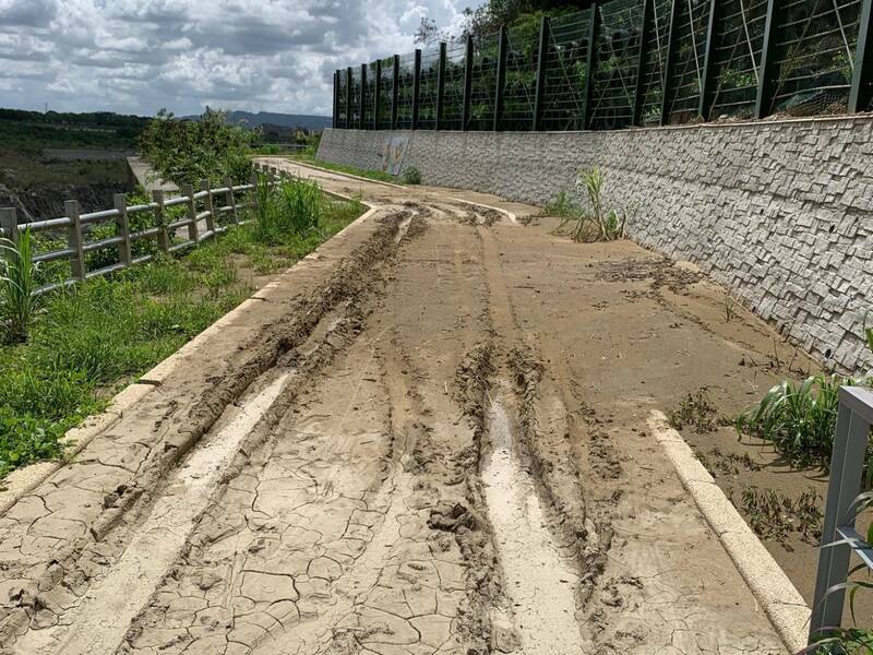 集集攔河堰自行車道,是連結集集綠色隧道與鎮上自行車路網的重要路段,近年公所完成闢建,完整串聯小鎮單車旅遊,不料最近卻接連遭逢梅雨和午後強降雨,邊坡土石因雨水沖刷滑落,泥流傾洩也布滿車道,使得路面泥濘不堪,影響通行與安全。