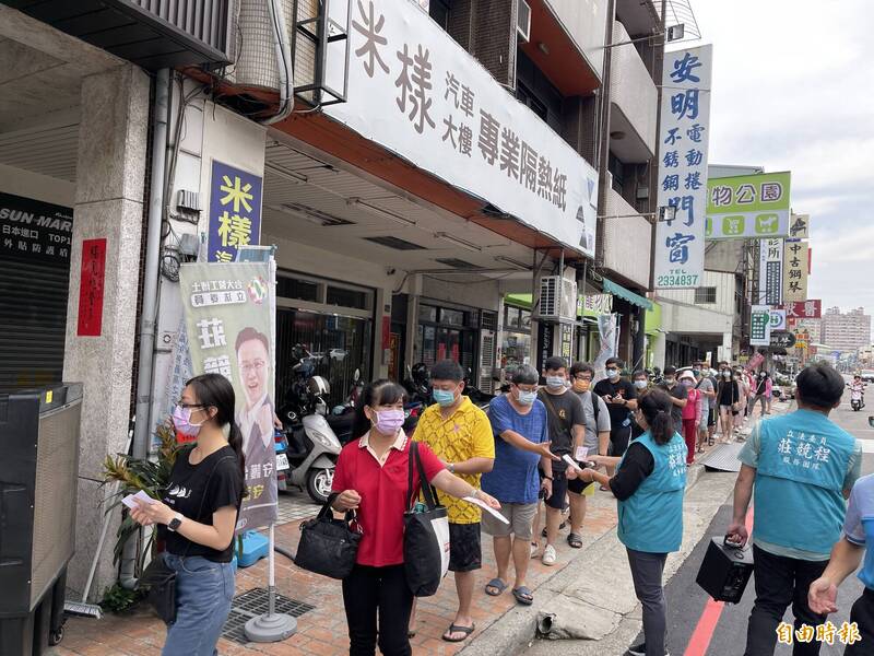 上述「挽袖捐熱血、愛心做公益」捐血活動,今天(2日)上午9時起,在北屯區北屯路立委莊競程服務處旁舉行,上午6點多即有民眾來排隊,包括莊競程及多名里長都挽袖捐血,希望為紓解血荒盡綿薄之力。民進黨台中市長參選人、立法院副院長蔡其昌、市議員曾朝榮、總統府資政李茂盛、高大成醫師與北屯區松勇里長王嘉君、新平里長李良仁等多位里長都出席與民眾互動。