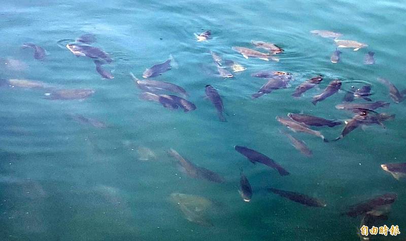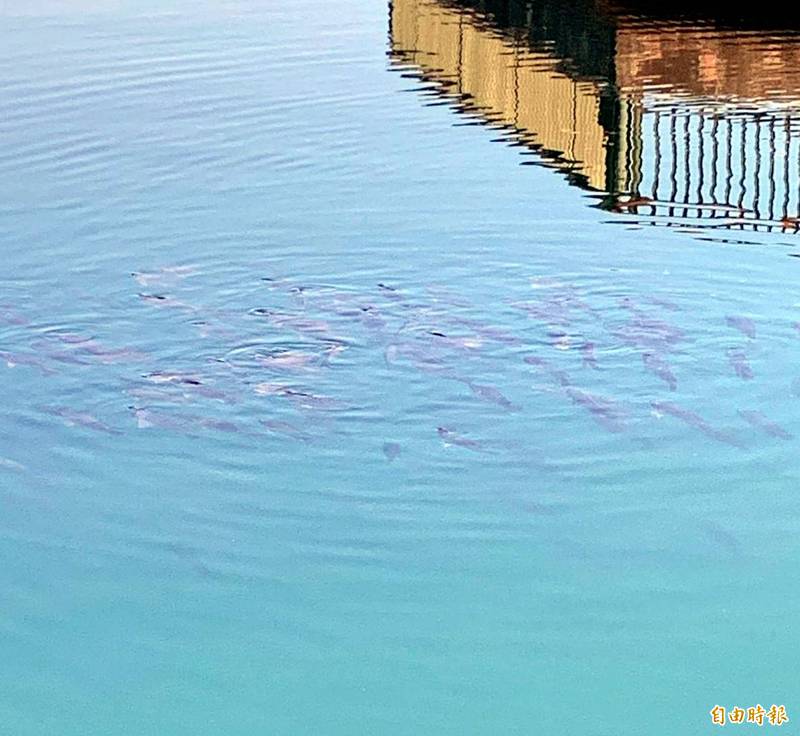 〔記者謝介裕/南投報導〕「潭面怎哪麼多魚…」,在無人餵食下,今上午8時許,從日月潭伊達邵碼頭迄纜車站一帶水域,突然出現許多魚兒成群往潭面竄動的異象,不但魚群規模較昨日多,且距離岸邊也更近,令造訪的遊客又驚又喜。農委會特有生物研究中心表示,必要時可採樣送來該中心協助檢驗。