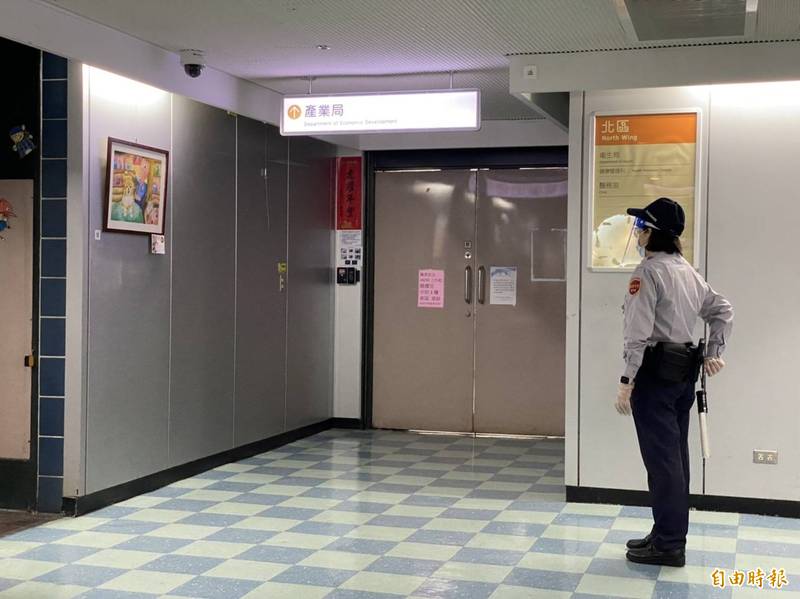 北市府驚傳員工確診,位於10樓的產發局大門緊閉、外有駐衛警看守;產發局指出,今早接獲通報有員工確診,隨即依照SOP進行員工快篩、環境清消作業等,均按程序進行,並非外傳「軟性封鎖」,至於相關確診者情況、接觸對象、採檢人數等疫調情形,須由市府統一對外說明。