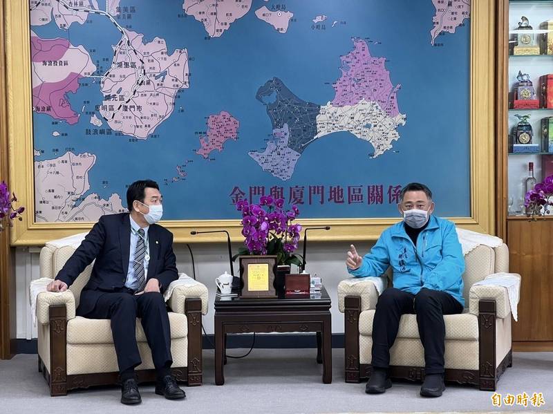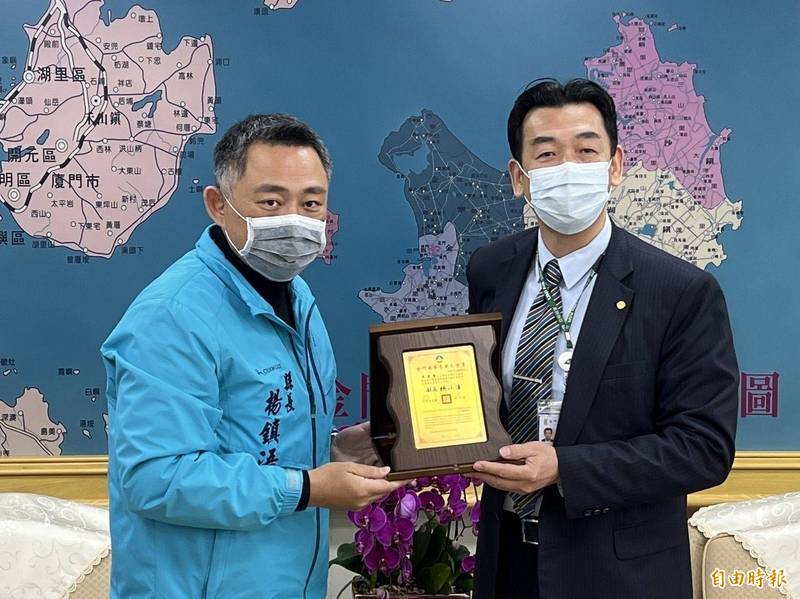陳連澄24日將前往立榮台北松山站履新,臨別前夕帶著接任者邵銀鎻前往縣府拜會縣長楊鎮浯,雙方交談甚歡。