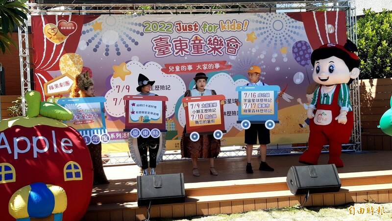 〔記者黃明堂/台東報導〕台東縣府今年暑假規劃辦理「2022 Just for Kids 臺東童樂會」,今天舉辦活動起跑記者會,縣長饒慶鈴宣告自7月9日起連續兩週六、日,邀請蘋果劇團巡迴縣內各區域,帶來4場次精彩演出,將藝文帶入各鄉鎮,讓孩子有機會接觸藝文,也藉此機會宣導社會福利事項,讓孩子的權益更受重視。