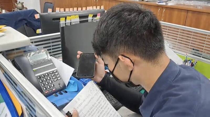 永康警分局永康派出所員警林忠毅透過3方通話方式,幫助海峽兩岸的堂兄弟家庭跨海相認。(警方提供)