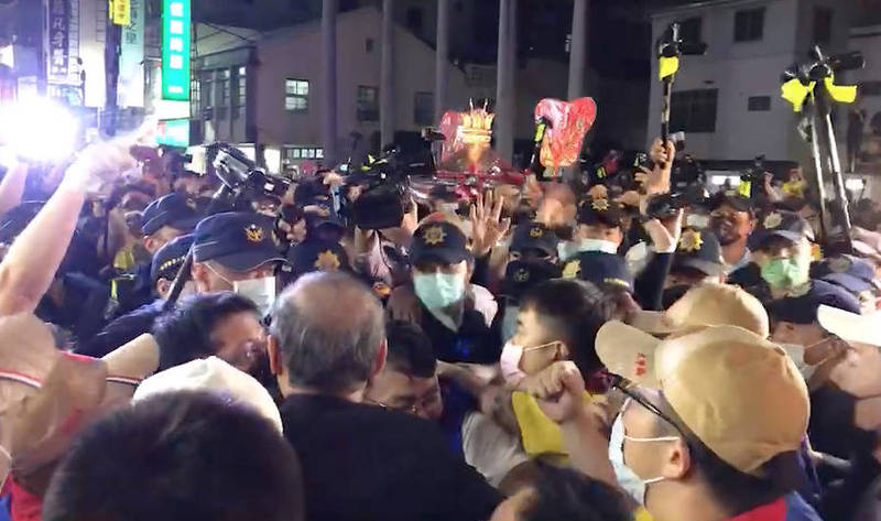 〔記者陳冠備/彰化報導〕大甲鎮瀾宮媽祖遶境9日晚經過彰化市,統促黨總裁「白狼」張安樂率眾與警發生激烈推擠,造成4名官警受傷,是近年最大一次衝突,大甲媽明日回鑾,為避免衝突事件再發生,彰化地檢署決定硬起來,將針對遶境回鑾途經路線,派出6位主任級以上檢察官率專責檢察官駐區盯轎,即時掌握並處理突發不法事件。