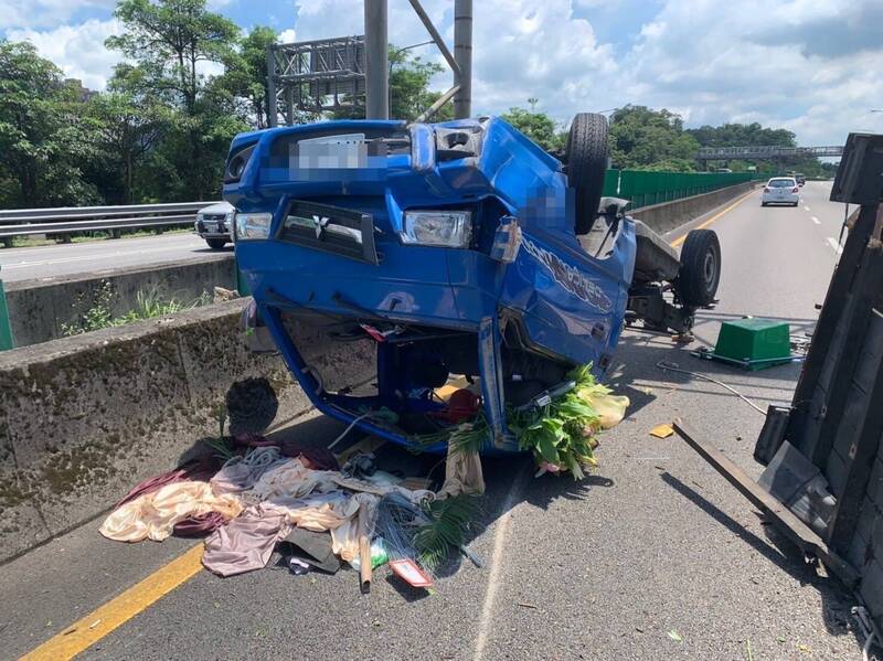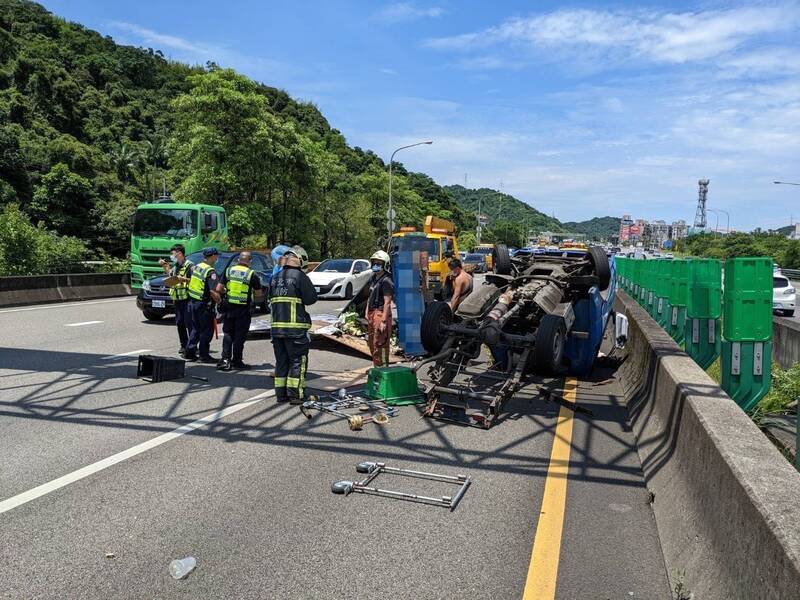 警方初步調查,該名小貨車司機因操作不當,一時不慎撞上內側水泥分隔島,導致車體180度翻覆,所幸司機還能自行脫困,爬出車外;目前事故已經排除,恢復通車,事故原因則待進一步調查釐清。