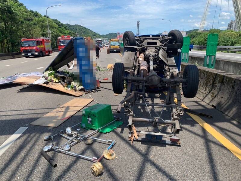 〔記者吳昇儒/新北報導〕新北市消防局今日中午12時42分接獲報案指出,位於國道一號南下10公里處有一輛小貨車自撞分隔島翻覆,駕駛一度受困車內。消防局立刻派員前往救援,所幸抵達時年約40多歲司機已經自行脫困,表示無須就醫。但因該事故佔用內側兩線車道,造成後方車輛回堵約5公里,警方已請拖吊車將貨車載離現場,交通逐漸恢復順暢中。