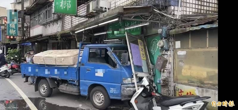 警方調查,66歲石姓小貨車駕駛今天下午4點左古載運回收床墊,沿基隆市中山區文化路開往市區,行經彎道時失控駛入對向車道。整輛車撞上檳榔攤,致檳榔攤鋼材凹陷,還好未撞到裡面的外籍檳榔西施。