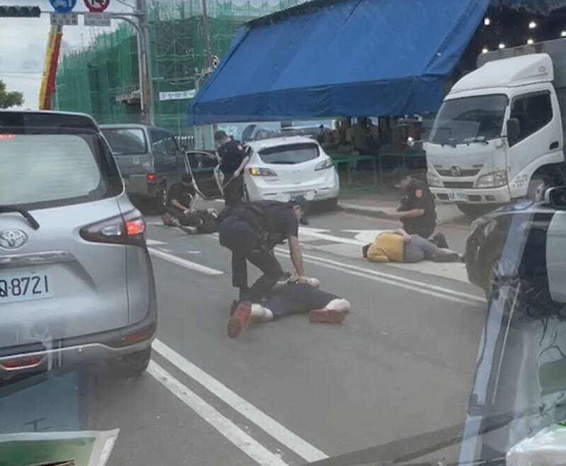 〔記者魏瑾筠/桃園報導〕臉書「爆廢公社」傳出一段1分半鐘的警察當街執法影片,只見幾名員警強力執法,攔下一輛轎車,將幾名嫌犯從車上拖下、壓制,引起網友一面倒叫好、支持;據了解,這是桃園市警局保安警察大隊今天(29日)下午的執法畫面,警方最後在車上起出1把改造手槍、6發子彈,還有部分毒品,訊後依槍砲、毒品、妨害公務罪嫌送辦。