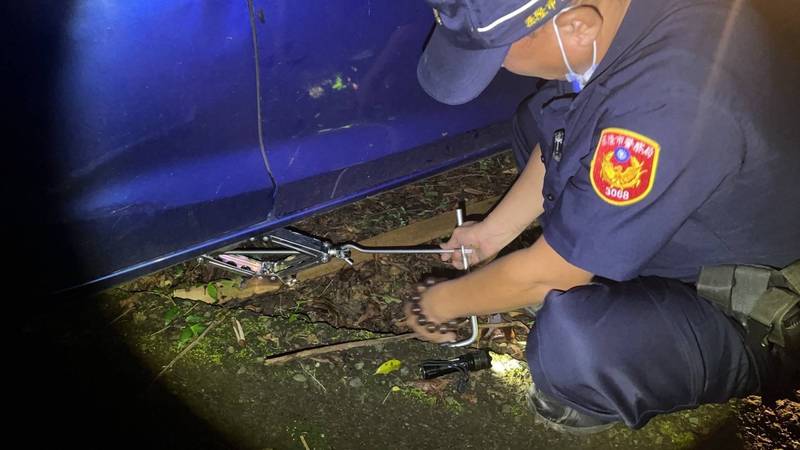 員警立刻向前詢問,發現車主就是失聯的劉男,但因輪胎陷入太深,利用各種方式都沒辦法排除狀況,好不容易才聯絡到願意上山的拖吊車到場,成功協助劉男脫困。