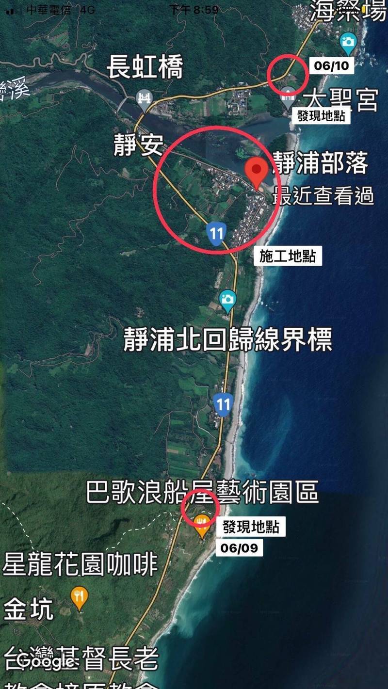 海巡署第一二岸巡隊石梯安檢所人員前天晚間7點多準備進入大峰峰海灘一帶巡邏,發現豐濱鄉台11線道71.5K路旁空地,遭人違規傾倒廢棄物,海巡成立專案小組,追問附近居民及港口派出所員警附近可疑工程,查出台電的下游包商在豐濱鄉靜浦部落進行人手孔蓋升降及維護工程,疑為挖開路面柏油施工產生的廢棄物。