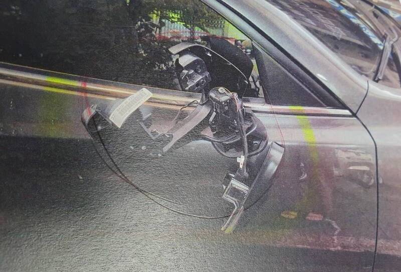 行車糾紛,車輛後照鏡及車身鈑金當街被砸。(記者邱俊福翻攝)