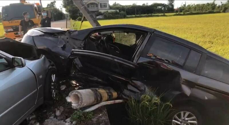 2車橋邊相撞 1車撞進田裡1車撞斷電桿