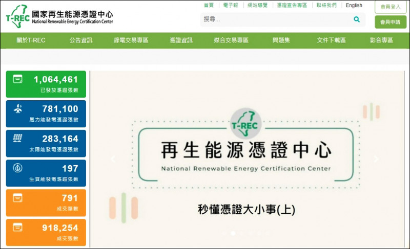 綠電憑證發放統計突破百萬張,是台灣綠能與憑證發展歷程重要里程碑。(翻攝憑證中心)